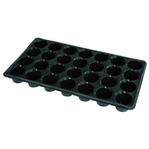 Černý lehčený mini sadbovač s 28 kusy v půdorysu kruhovými v průměru 6cm spojenými květináčky. Rozměr celého sadbovače je: 28 x 50 x v. 4,5cm.