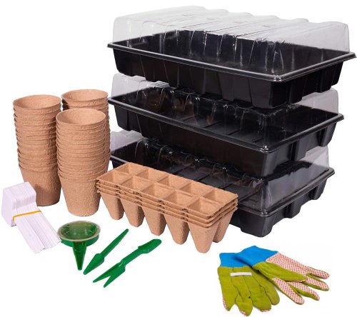 Balení obsahuje: 3 x plastový sadbovač 37x23x5,5cm + 3 x víko 39x25x8,5cm 4 (2x5) x papírový sadbovač 21,5x8cm 40 x papírový sadbovač pr. 6x6cm 20 x tabulka popisovací 15x5,6cm 10 x štítek popisovací 12x1,3cm 1x tužka, aplikátor, vidlička, vypichovač, rukavice