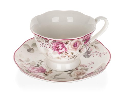 Šálek s podšálkem ROSE, s krásným květinovým vzorem, se hodí k podávání kávy nebo čaje při všedních i svátečních příležitostech. Šálek s podšálkem je vhodný do mikrovlnné trouby i myčky. S tímto dekorem si můžete zakoupit i další produkty a vytvořit si tak krásnou servírovací sadu.