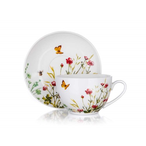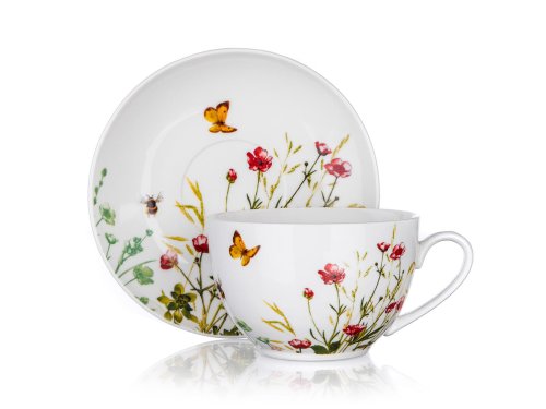 Šálek s podšálkem MEADOW, s krásným květinovým vzorem, se hodí k podávání kávy nebo čaje při všedních i svátečních příležitostech. Šálek s podšálkem je vhodný do mikrovlnné trouby i myčky. S tímto dekorem si můžete zakoupit i další produkty a vytvořit si tak krásnou servírovací sadu.