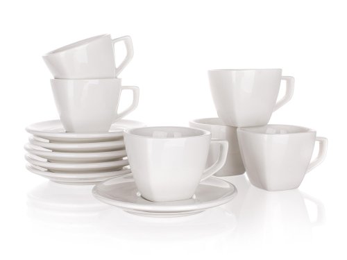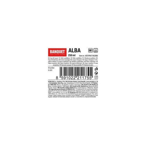 Šálek + podšálek 250 ml, square, ALBA, porcelánový BÍ.