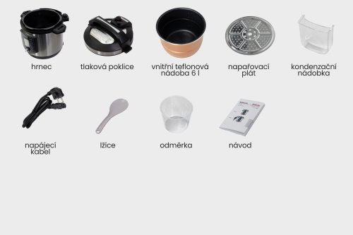 • Nádoba o objemu 6l - umožňuje vaření pro celou rodinu (2 - 6 osob), vhodná do myčky