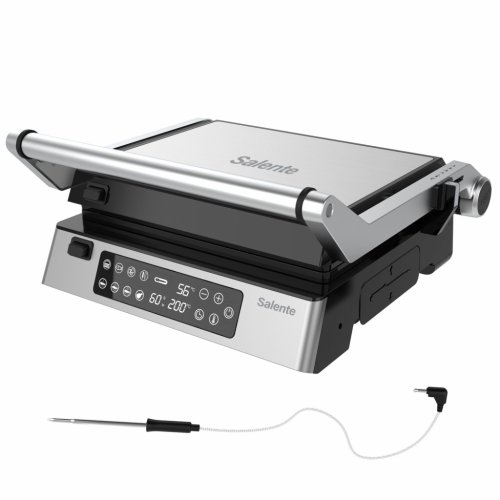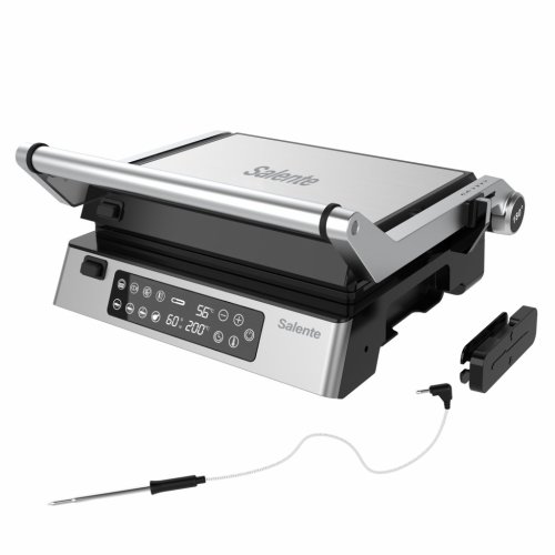Spolu s grilem je dodávána externí teplotní sonda, jejíž jehlu stačí zapíchnout do masa a na displeji se ihned zobrazí okamžitá teplota masa. Na dotykovém ovládacím panelu si nastavíte požadovanou cílovou teplotu a gril vás akustickým signálem upozorní na její dosažení. Nárůst teploty sondy můžete po celou dobu grilování velmi pohodlně sledovat na displeji a získat tak dokonalou kontrolu nad propečeností masa. Cílovou teplotu lze libovolně měnit dokonce i v průběhu grilování, aniž by bylo potřeba jehlu vyjmout z masa. Cílovou teplotu je možné nastavit od 45 do 90 °C v krocích po 1 °C. Velmi praktický je pak úložný box pro sondu i její kabel. Celý box je díky magnetickému uchycení efektně skryt v těle grilu na jeho boční straně – sondu tak máte vždy po ruce a nemůžete ji ztratit.