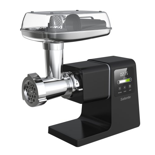 Vrcholem komfortu u masomlýnku Salente MeatPlus je dotykový digitální displej se sliderem tak, jak je znáte ze špičkových varných desek, kdy stačí prstem pouze lehce přejet doleva nebo doprava a hned se reguluje rychlost otáček. Tento způsob ovládání je nejen velmi moderní, elegantní, ale hlavně rychlý a zaručuje dlouho životnost na rozdíl od běžných mechanických ovládacích prvků. Umíte si to představit – máte ruce od masa a tuku a potřebujete rychle a spolehlivě regulovat otáčky a tím i rychlost mletí. Displej pak stačí otřít vlhkým hadříkem a je hotovo.