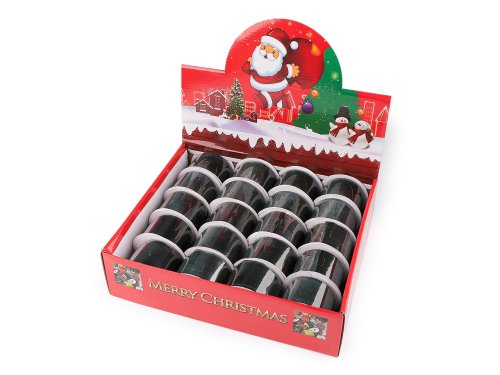 Široká sametová stuha je na dotek příjemná a měkká. Využijete ji na vánoční mašle, věnce, k dekoraci slavnostní tabule i židlí. Vynikne také v květinových vazbách. Je oblíbená i na balení dárků. Je navinutá na praktické cívce, což usnadňuje její použití a skladování. Velké balení 20 cívek je zabalené v papírové krabici s vánočním potiskem, která je vhodná na vystavení na prodejní pult. Má rozměry 27 x 33 x 8 cm.