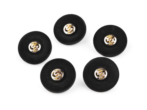 Elegantní knoflíky jsou potažené sametem a v jejich středu je kovová ozdoba. Vyniknou na sakách, svetrech, vestách apod. Mají spodní přišívání. Velikost knoflíků naleznete v této tabulce.
