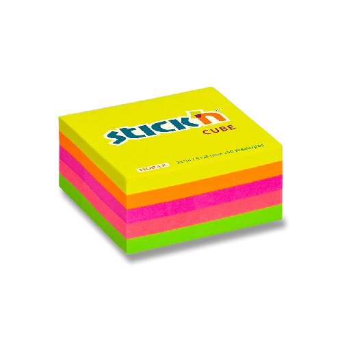 Samolepicí bloček ve tvaru kostky. Velikost 51 x 51 mm, 250 listů, 5 barev.