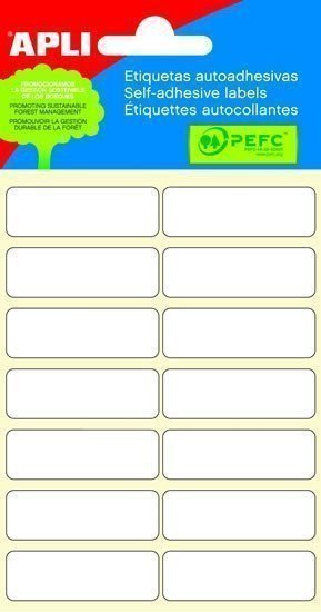 Samolepící etikety, obdélníkový tvar. Rozměr 13 x 40 mm. Permanentní. Malé balení v blistru, 84 ks, 6 listů.