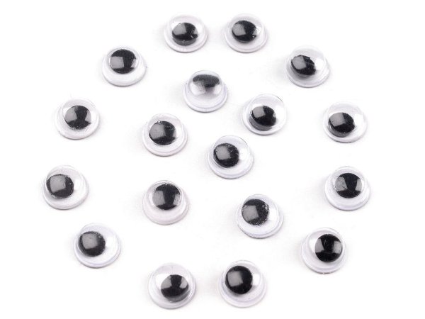 Plastové oči dodají opravdový výraz postavičkám lidí, zvířat, bájným tvorům i ufonům. Záleží jen na vaší fantazii, kam je nalepíte. Jejich velikost je malá, najdou široké uplatnění při tvorbě originálních přání technikou scrapbooking. Černá čočka je pohyblivá. Spodní strana je opatřená samolepicí fólií. Nalepení očí je snadné. Odlepte spodní krycí papír a oči přilepte na suchý, čistý, pevný povrch.