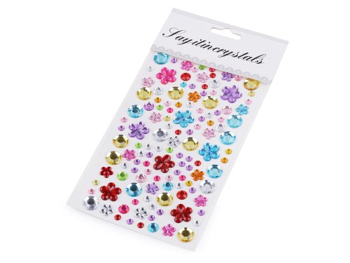 Sadu samolepicích ozdob z kamínků ocení nejen dívky, ale i všichni příznivci scrapbookingu. Kamínky jsou broušené, působivě se třpytí. Ozdoby jsou nalepené na jednom archu podkladové folie, ze které se pohodlně odlepí. Hodi se na ozdobení mobilu, tabletu, přáníčka, krabičky, zrcátka, květináče, deníku, fotoalba apod. Doporučujeme je lepit na suchý, hladký a pevný povrch.