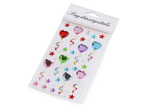 Sadu samolepicích ozdob z kamínků ocení nejen dívky, ale i všichni příznivci scrapbookingu. Kamínky jsou broušené, působivě se třpytí. Ozdoby jsou nalepené na jednom archu podkladové folie, ze které se pohodlně odlepí. Hodi se na ozdobení mobilu, tabletu, přáníčka, krabičky, zrcátka, květináče, deníku, fotoalba apod. Doporučujeme je lepit na suchý, hladký a pevný povrch.