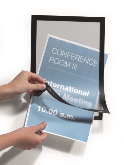 Samolepicí informační rámeček ve formátu A4 Odklopitelná, magnetická přední strana pro rychlou a pohodlnou výměnu dokumentu Balení obsahuje 2 ks