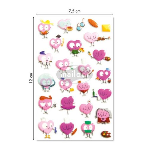 Samolepky Maildor 3D Cooky s motivy akčních srdíček a s efektem 3D. Balení obsahuje 1 arch s 25 samolepkami. Rozměr balení 7,5 x 12 cm.