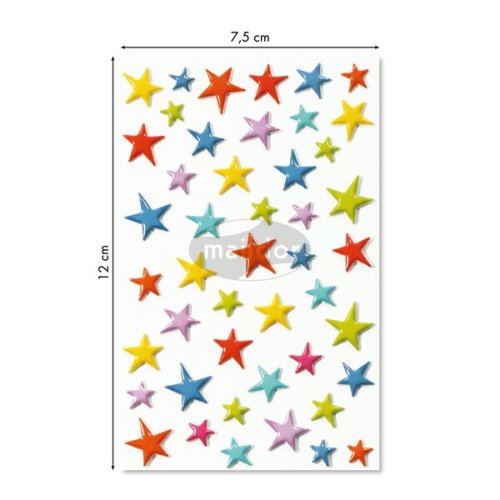 Samolepky Maildor 3D Cooky s motivy barevných hvězdiček a s efektem 3D. Balení obsahuje 1 arch s 46 samolepkami. Rozměr balení 7,5 x 12 cm.