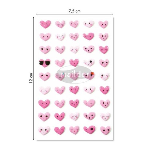 Samolepky Maildor 3D Cooky s motivy emotikonů ve tvaru srdce a s efektem 3D. Balení obsahuje 1 arch s 45 samolepkami.