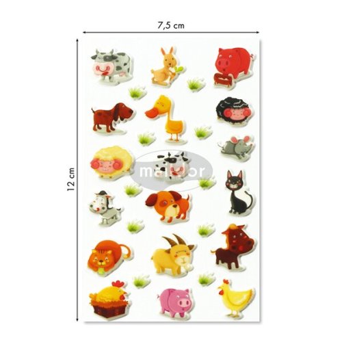 Samolepky Maildor 3D Cooky s motivy zvířátek z farmy a s efektem 3D. Balení obsahuje 1 arch s 28 samolepkami.