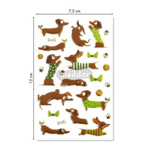 Samolepky Maildor 3D Cooky s motivy rozdováděných jezevčíků a s efektem 3D. Balení obsahuje 1 arch s 26 samolepkami.