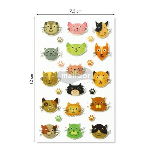 Samolepky Maildor 3D Cooky s motivy kočičích hlaviček a s efektem 3D. Balení obsahuje 1 arch s 24 samolepkami. Rozměr balení 7,5 x 12 cm.