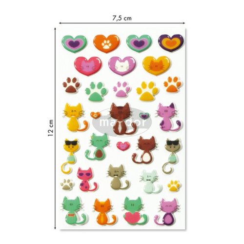 Samolepky Maildor 3D Cooky s motivy kočiček a srdíček a s efektem 3D. Balení obsahuje 1 arch s 31 samolepkami.