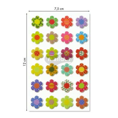Samolepky Maildor 3D Cooky s motivy kytiček a s efektem 3D. Balení obsahuje 1 arch s 24 samolepkami. Rozměr balení 7,5 x 12 cm.