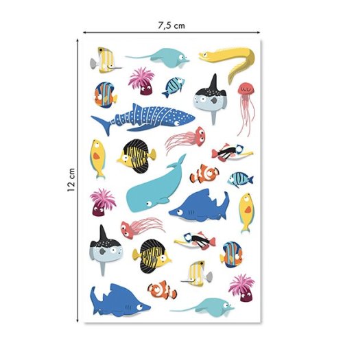 Samolepky Maildor 3D Cooky s motivy mořských zvířátek a s efektem 3D. Balení obsahuje 1 arch s 29 samolepkami.