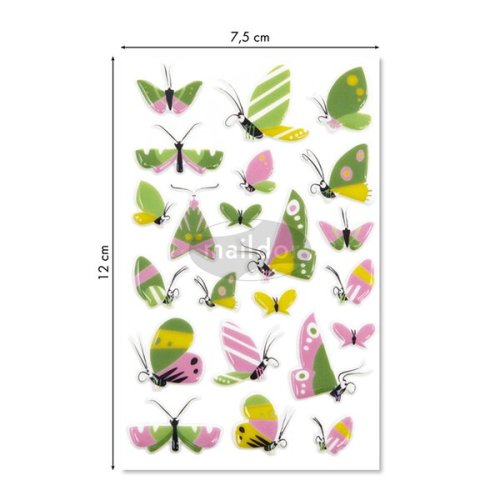 Samolepky Maildor 3D Cooky s motivy motýlků a s efektem 3D. Balení obsahuje 1 arch s 22 samolepkami. Rozměr balení 7,5 x 12 cm.