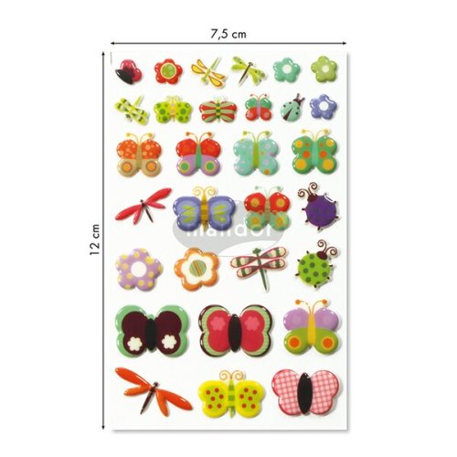 Samolepky Maildor 3D Cooky s motivy motýlů a vážek a s efektem 3D. Balení obsahuje 1 arch s 30 samolepkami.