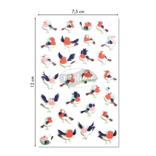 Samolepky Maildor 3D Cooky s motivy ptáčků a s efektem 3D. Balení obsahuje 1 arch s 28 samolepkami. Rozměr balení 7,5 x 12 cm.