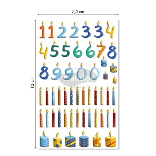 Samolepky Maildor 3D Cooky s motivy svíček a s efektem 3D. Balení obsahuje 1 arch s 35 samolepkami.