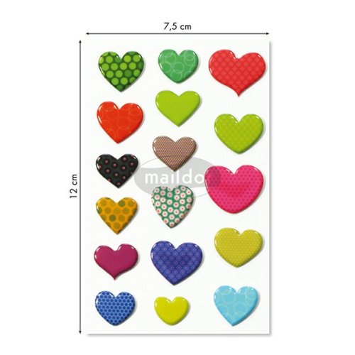 Samolepky Maildor 3D Cooky s motivy vzorovaných srdcí a s efektem 3D. Balení obsahuje 1 arch s 17 samolepkami. Rozměr balení 7,5 x 12 cm.