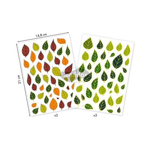 Samolepky Maildor Decoraty s motivy listů. Možnost kombinování výtvarných aktivit jako je kreslení a použití samolepek. Balení obsahuje 6 listů, 2 motivy po 3 ks. Samolepky lze sloupnout a znovu nalepit. Rozměry balení: 14,8 x 21 cm.