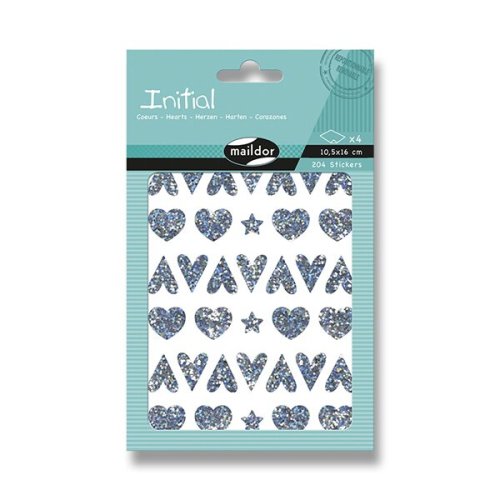 Samolepky Maildor Inital menší velikosti s tvary hvězdy a srdce s holografickým efektem. Balení obsahuje 4 listy, 2 motivy po 2 ks. Samolepky lze sloupnout a znovu nalepit. Rozměry balení: 10,5 x 16 cm.