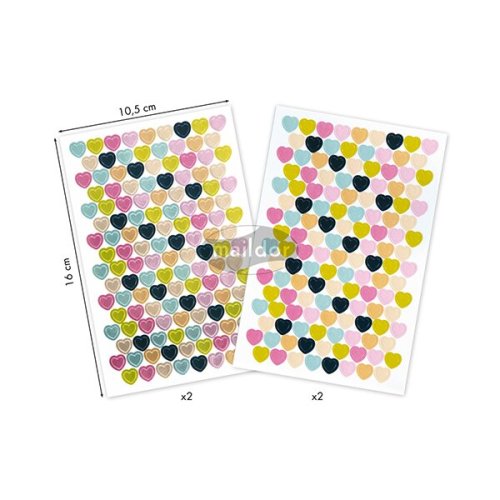 Samolepky Maildor Initial Metallic menší velikosti s motivem srdíček s metalickým efektem. Balení obsahuje 4 listy, 2 motivy po 2 ks. Rozměry balení: 10,5 x 16 cm.