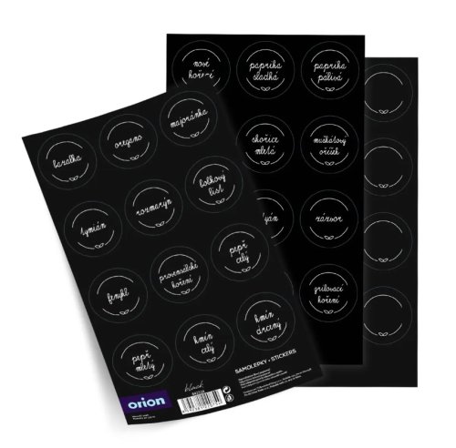 Kulaté samolepky s CZ popisky na popis kořenek/skleniček s kořením. Skvěle označíte kořenky na víčku, pokud je máte umístěné v šuplíku a díváte se na ně shora. Pokud je máte v poličce nebo ve skříňce, využijete je spíše klasicky na boční stranu kořenek / skleniček. Sada 36 ks, černé provedení. Samolepka má průměr 3.5 cm. Lze použít na dózy, kořenky BLACK, na skleněné dózy, kořenky, atd. EAN 8592381220754