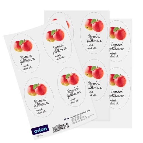 Samolepky na láhve, demižony nebo jiné nádoby s domácí jablkovicí označí i ozdobí váš domácí produkt. Můžete na nich vyznačit rok výroby a obsah alkoholu, stačí dopsat tyto údaje lihovou fixou na samolepku. Sada 12 ks. Rozměry 7.5 x 5 cm. EAN 8592381220693
