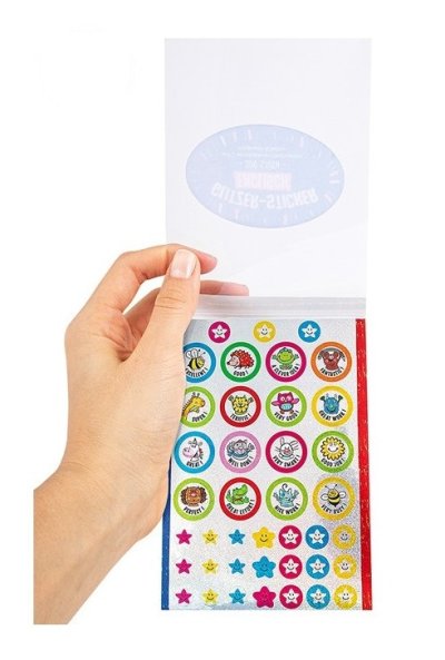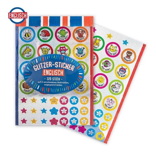 Úžasné třpytivé (glitter) samolepky, celkem 320 kusů v balení, 11x14,5 cm u některých samolepek je v angličtině známá fráze, kterou v dnešní době zná již téměř každé dítě, samolepky lze tedy použít i k hodnocení/motivaci dětí při plnění různých úkolů, ať už ve škole nebo doma