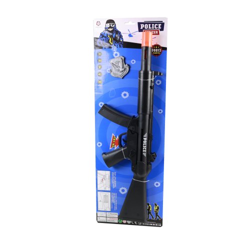 Famózní policejní samopal s reálnými zvuky a světelným efektem! Do samopalu je potřeba vložit 2 ks baterií typu AA, které nejsou součástí balení. S tímto 53 cm dlouhým samopalem, zvládneš každou policejní akci!