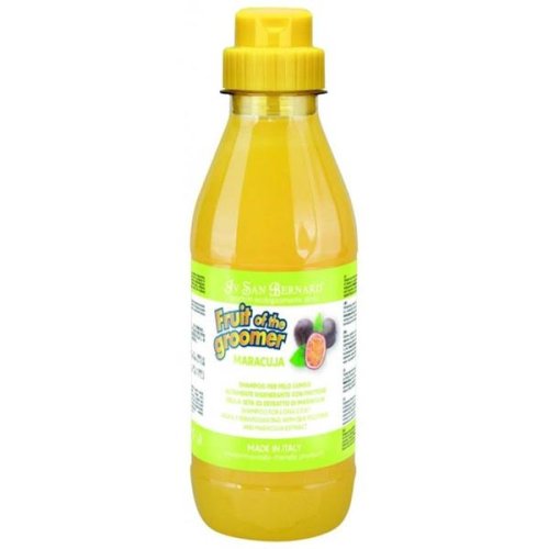 Šampon pro běžné a časté mytí dlouhosrstých psů a koček. Šampon pro běžné a časté mytí s obsahem tropického ovoce marakuji a bílkovin, které vysoce regenerují dlouhou srst. Aktivní složky marakuji obsahují dodávají kůži a srsti vitamíny. Výsledkem je hedvábná srst. Má výraznou vůni, kterou lze spojit s aromaterapií. Použití: Vodou sprchujte srst a kůži psa nebo kočky dokud nejsou dokonale namočené. Šampon nařeďte 1:3 a jemně vmasírujte do srsti
