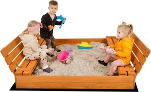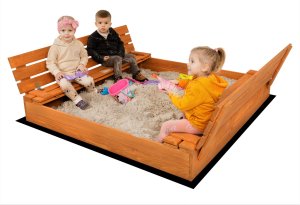 Dětské pískoviště z přírodního materiálu je ideálním doplňkem každé zahrady. Děti se zabaví na dlouhé hodiny a prostřednictvím hry v písku si zlepší své manuální a koordinační dovednosti. Pískoviště je vyrobené z jehličnatého dřeva. Jedná se o výrobek prvotřídní kvality, nikoli o odpad z výroby jiných dřevěných výrobků. Použitý materiál prošel procesem sušení, hoblování, broušení a pečlivou ruční impregnací. Desky mají hladké hrany a pískoviště je tak vhodné pro děti již od 6 měsíců. V rozloženém stavu má dvě lavičky pro pohodlné usazení dětí nebo dohlížejících rodičů. Po ukončení hry se lavičky složí a pískoviště jimi snadno zakryjete. Pískoviště má dno z odolné netkané textilie a plachtu pro zakrytí a ochranu před povětrnostními vlivy. Rozměry složeného pískoviště jsou 146 x 137 x 20 cm. Tloušťka dřevěných desek je 1,8 cm. Balení obsahuje: