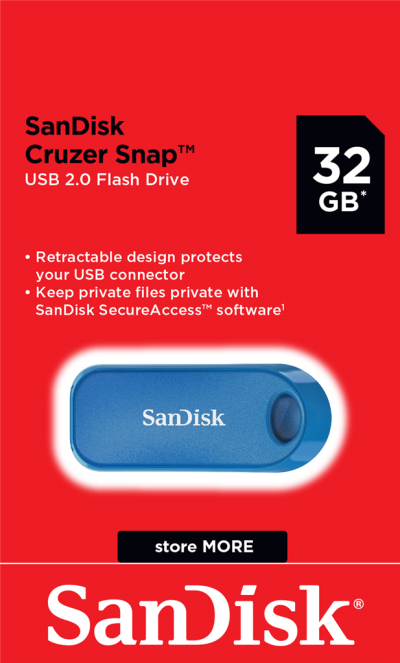 - USB flash disk má zatahovací konstrukci chránící konektor před nečistotami a poškozením - dostatek místa pro vaše fotografie, písně a ostatní soubory - SanDisk Secure Access software (vyžaduje stažení): …