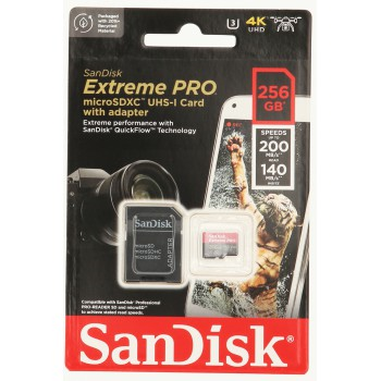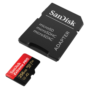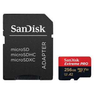 SanDisk Extreme PRO microSDXC 256GB + SD Adapter 200MB/s and 140MB/s A2 C10 V30 UHS-I U3