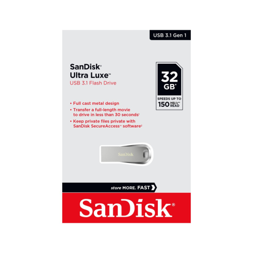 SanDisk Ultra Luxe USB ™ 3.2 Gen 1 flash disk zajišťuje rychlé přesuny Vašich dat mezi jednotlivými médii, tím zkrátí Vaše čekání. Díky USB 3.2 Gen 1 přenese Vaše data rychleji než standardní USB 2.0. Přeneste film v plné délce na disk za méně než 30 s! Stylový elegantní kovový design je navržen tak, aby byl dostatečně pevný a odolával nárazům. Umožňuje nastavitelnou ochranu heslem, takže si můžete být jistí, že Vaše data zůstanou soukromá a viditelná je pro Vámi zvolené osoby.