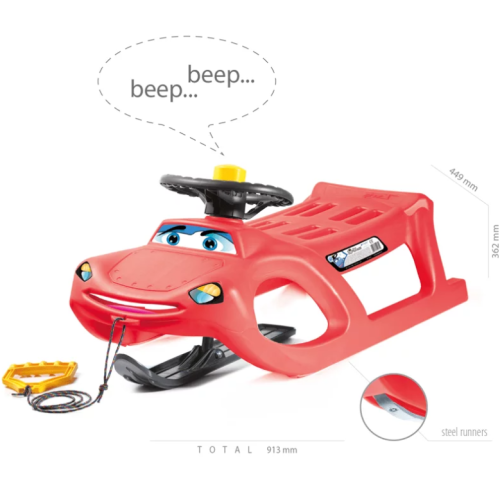 Pomocí volantu děti včas zatočí a vyhnou se překážce na cestě. Pro ještě bezpečnější jízdu mají sáně volant se zvukem. Toho určitě holky a kluci využijí, aby upozornili, že se k vám blíží. Díky ocelovým kluznicím bude jízda hladká a svižná. Jakmile se sklouznou, táhnou za sebou sáně pomocí lana.