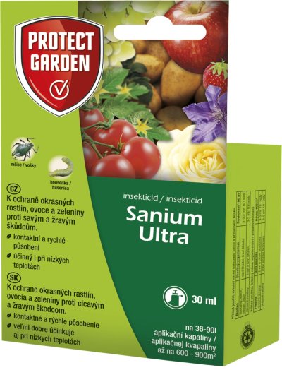 Deltamethrin, účinná látka přípravku Sanium Ultra, je světlostálý syntetický pyrethroid. Hubí škůdce jako dotykový a požerový jed s významným repelentním účinkem proti celé řadě škůdců, zejména mšicím a částečným ovicidním účinkem. Svilušky nehubí. Nemá systémový účinek, proto je třeba, aby byly při aplikaci rovnoměrně zasaženy všechny části rostlin.