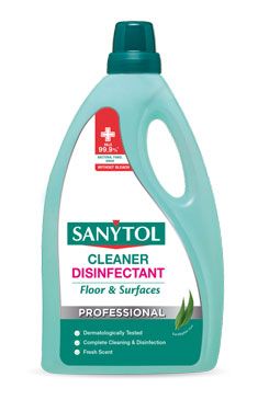 Sanytol čistič na podlahy a plochy díky trojímu účinku - bakteriálnímu, fungicidnímu a virucidnímu - dezinfikuje všechny materiály a plochy a ničí mikroby. Čistí, dezinfikuje a odmašťuje všechny plochy v domácnosti. Neobsahuje chlór a nezpůsobuje skvrny. Biologicky odbouratelný. S vůni eukalyptu.