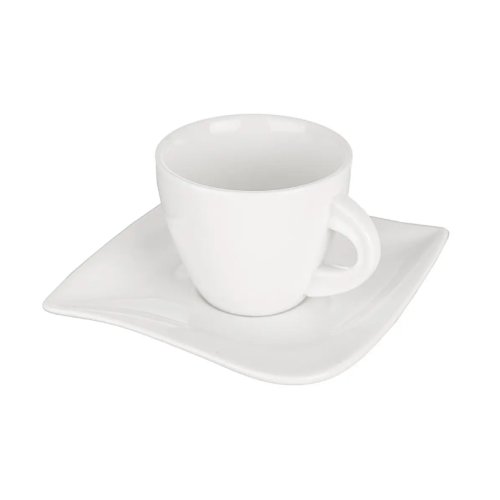 Hrnek s uchem na espresso včetně podšálku. Materiál porcelán. Objem 0.12 litru, průměr 7 cm, výška 5.5 cm. Lze mýt v myčce na nádobí i používat v MVT. Podšálek 12.5 x 125 cm. EAN 9001793923577 / 9001793923607