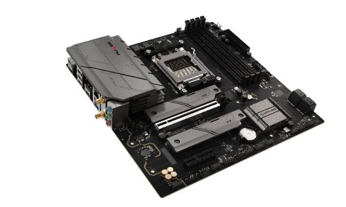 Deska je vybavena slotem PCIe 4.0 x16 pro grafickou kartu, dvěma M.2 sloty (PCIe 5.0 a 4.0) pro rychlé SSD a čtyřmi SATA porty pro klasické disky. Nechybí Realtek ALC897 HD Audio pro kvalitní zvuk, 2.5Gb LAN a WiFi 6 + Bluetooth 5.3 pro stabilní připojení.