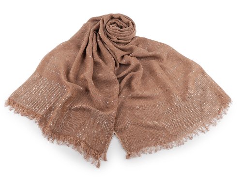Elegantní bavlněný šátek s drobnými flitry je dokonalým doplňkem pro každou příležitost. Je oboustranný, flitry krásně zachycují světlo, vašemu outfitu dodají nádech luxusu. Materiál šátku je jemný a příjemný na dotek. Konce šátku jsou ozdobené jemnými třásněmi dlouhými 2 cm. Šátky mohou mít špatné štítky, skutečné složení je bavlna a polyester. Omlouváme se za toto nedopatření a děkujeme za pochopení.