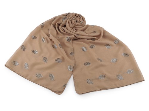Šátek s metalickým potiskem listů je velice příjemný na dotek, je vzdušný a lehký. Bude elegantním doplňkem pro každou příležitost, potisk je zlato - černý. Doladí váš outfit, ať už si vezmete sako, halenku, svetřík či šaty. Hodí se k formálním i neformálním outfitům, můžete ho snadno kombinovat s vaším šatníkem. Šátky mohou mít špatné štítky, skutečné složení je polyester.