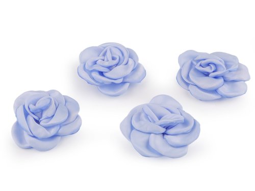 Saténový květ růže k našití a nalepení Ø5 cm - modrá světlá (4 ks)